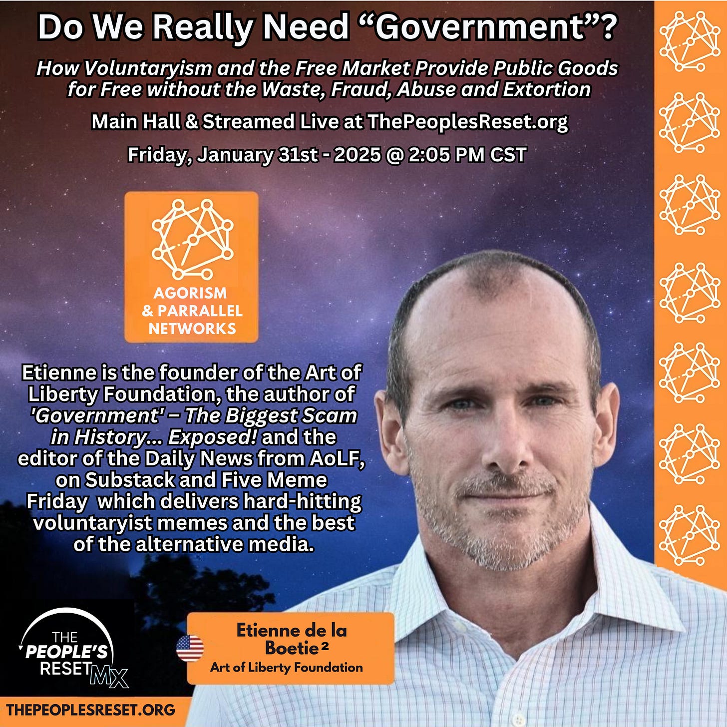 Mandatory “government” schools and monopoly media/academia make “government” seem indispensable, but Etienne de la Boetie2, the founder of the Art of Liberty Foundation and author of “Government” – The Biggest Scam in History… Exposed! will make the case that free markets, mutual aid societies, co-ops, insurance companies, non-profits, and real charity can do a better job at providing public services