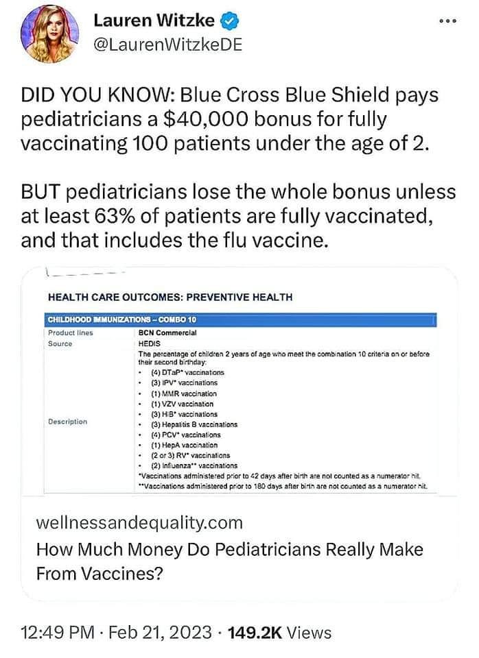 The doctors and hospitals like the Henry Ford Health Care System are kept in line and “willfully ignorant” by a combination of obviously fake “tobacco science” from the corrupt regulatory agencies, control of medical education by the AMA which has a monopoly on the licensure of medical schools, and the profit motive of pediatricians which make a fortune both selling vaccines AND being compensated by cartel health providers for achieving a certain percentage of the kids in their practice being vaccinated. The organized crime media keeps the evidence off the news and out of the papers by the threat of pharmaceutical companies pulling their advertising.