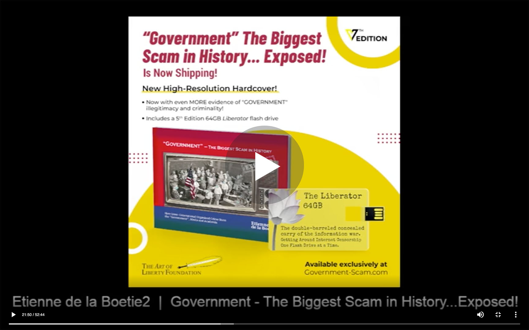 James Corbett of the Corbett Report did a “Questions for Corbett” segment where he let Art of Liberty Foundation founder Etienne de la Boetie2 field a question from Tony in Sweden on the best way to introduce voluntaryism to friends and family. Tony was looking for a “handbook” and “Government” – The Biggest Scam in History… Exposed! made the list.