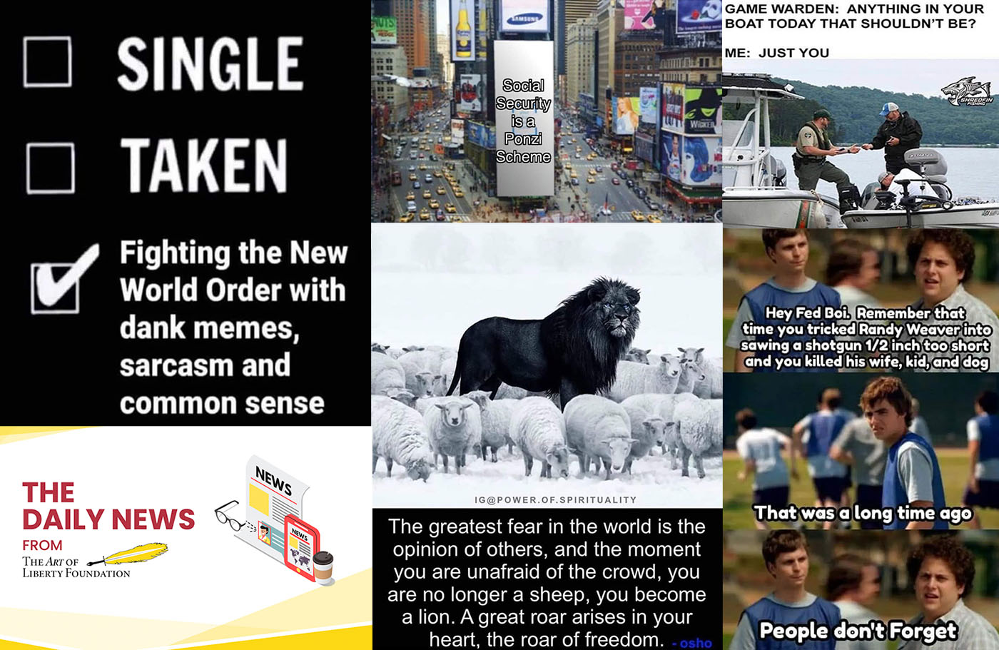 Join 6,200+ e-mail subscribers here: https://dev3artofliberty.stepintomedia.com/five-meme-friday and we just created a Telegram Channel: https://t.me/FiveMemeFriday