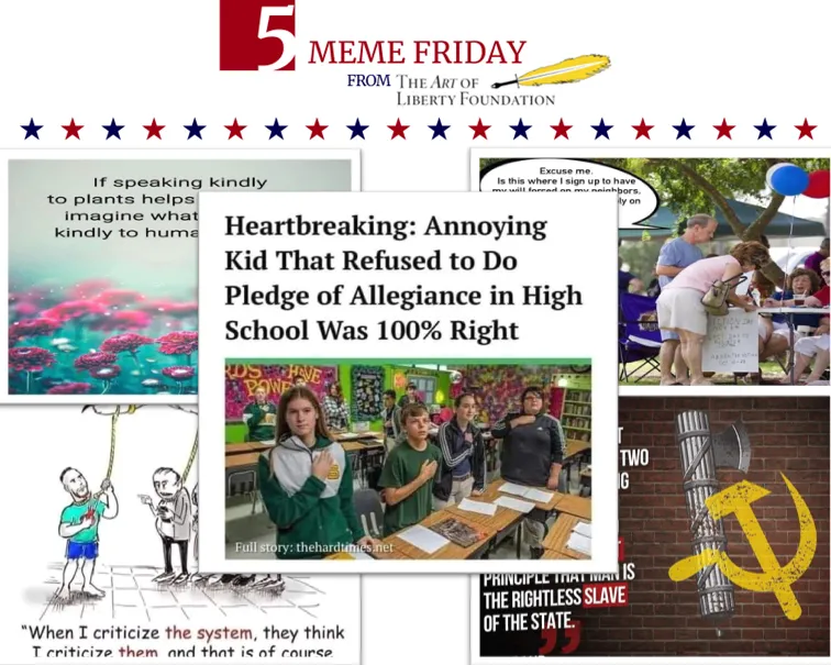 5 Meme Friday delivers 5 hard hitting memes to your inbox every Friday and the best videos and news from the alternative media. Join 6,600+ e-mail subscribers here: ArtOfLiberty.org/five-meme-friday and subscribe to Five Meme Friday on Substack as well: FiveMemeFriday.substack.com