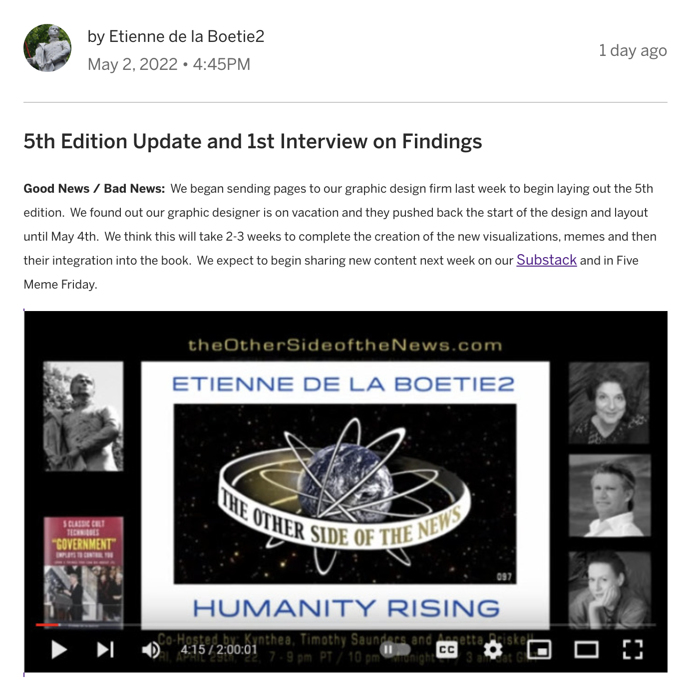 5th Edition Update and 1st Interview on Findings