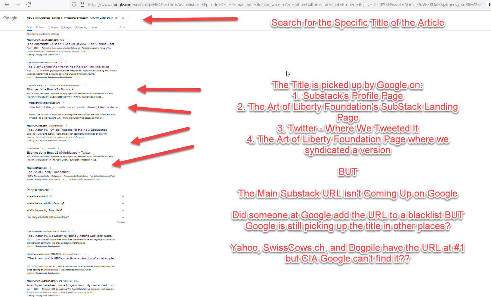 If the CIA isn’t behind HBO’s “The Anarchists” and Anarchapulco then Why is my Expose Being Censored by CIA Google?
