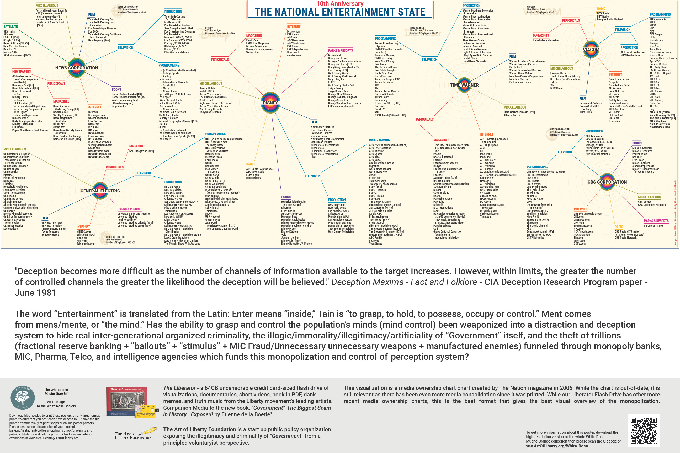 You can actually see all of the companies and subsidiaries rolled under that. You’re like, holy crap, there’s six companies running hundreds and hundreds of subsidiaries to give everybody the illusion that there’s all these different media sources and society, but it’s really a monopoly. It’s really a cartel. And all six are working together to censor certain information from ever reaching the public. And this is it. You’re over the target right now. This is the number one thing that you will never see on the monopoly media. You’re getting it right here, right now, unfiltered, raw, that government has been a scam. You don’t owe anybody any money, but you know what you’re doing. And as we’re about to get into, they’re running unethically manipulative techniques on the population that creates a cult.