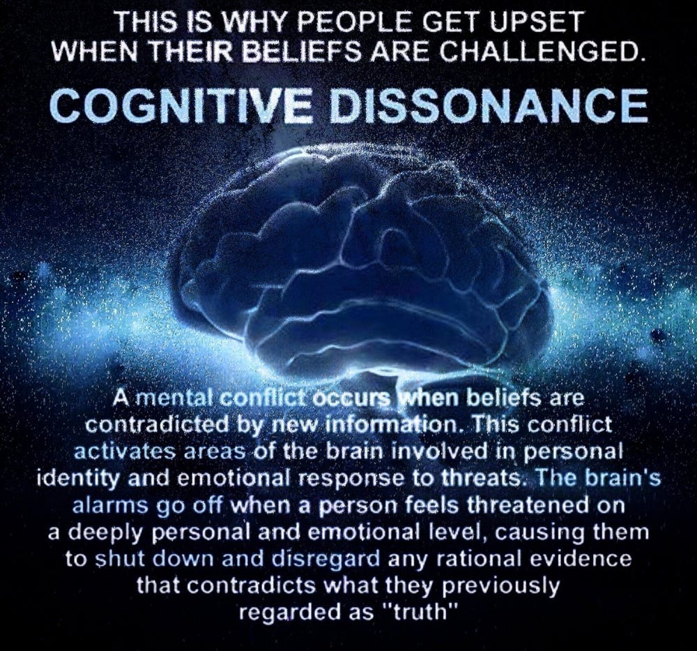 Now with, with respect to what’s going on, there is a huge psychological resistance called cognitive dissonance. where the human brain refuses to accept new information that either conflicts with previously learned information or causes psychological pain.