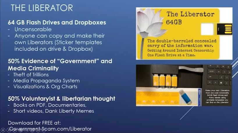 Yeah, man, I appreciate you sending me this care package of the new book and the 64GB Liberator for people who can’t see it. It is a credit card shaped thumb drive. You can actually pop out this side. And it actually plugs into any computer. I was a little surprised that it fit into a USB slot myself, but man, there is some really spicy things on here worth talking about from school shootings.