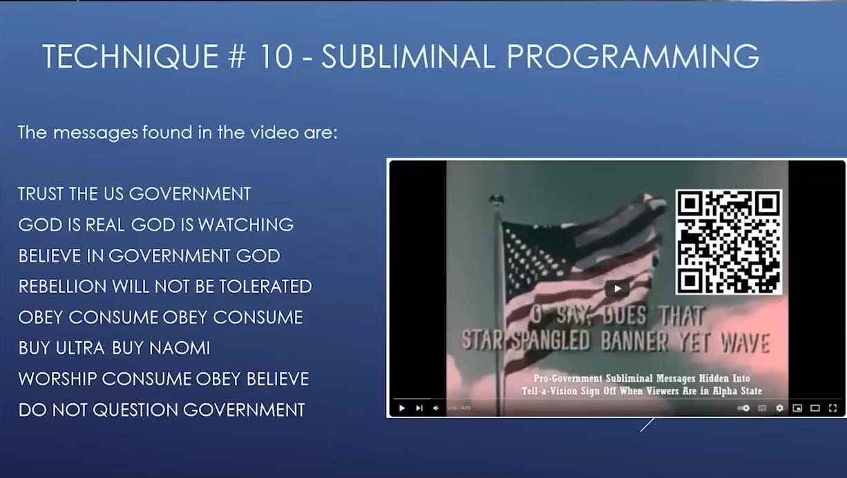 But when it comes to the sports and the other stuff I mentioned in movies, like it really does seem like all of culture is created so that the more you engage with it, the more affected by it you are. There is one slide. It’s actually. Technique number 10 in the book, you have a QR code that you can scan and be taken to this video that I just thought was crazy. So it is a television sign off message from the 1960s. So obviously the further you go back, the fewer. Programs are even on TV. I used to be a film buff and I could have basically watched all films that were created. And now there’s like no way you can keep up with the shit that they’re pumping out. But you go back to this time and yes, that’s the QR code right there.