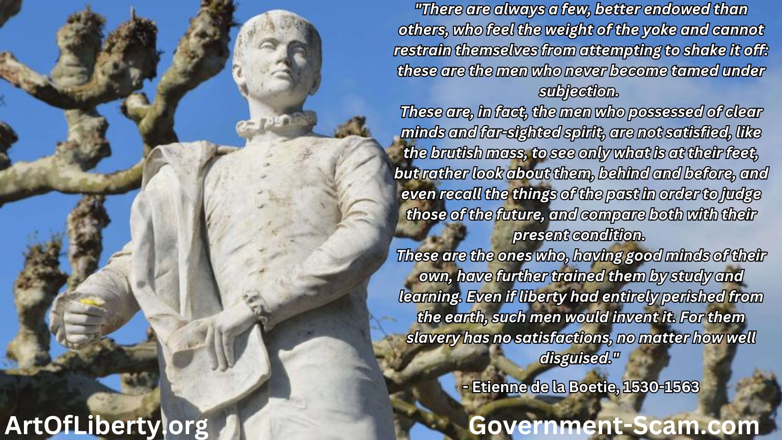 Etienne de la Boetie2 is the founder of the Art of Liberty Foundation, and the editor of the Art of Liberty Daily News on Substack and Five Meme Friday, which delivers hard-hitting voluntaryist memes and the best of the alternative media. He is an internationally recognized expert and speaker on voluntaryism and government illegitimacy, criminality and corruption. His original writings and research can be found at ArtOfLiberty.org and ArtOfLiberty.Substack.com