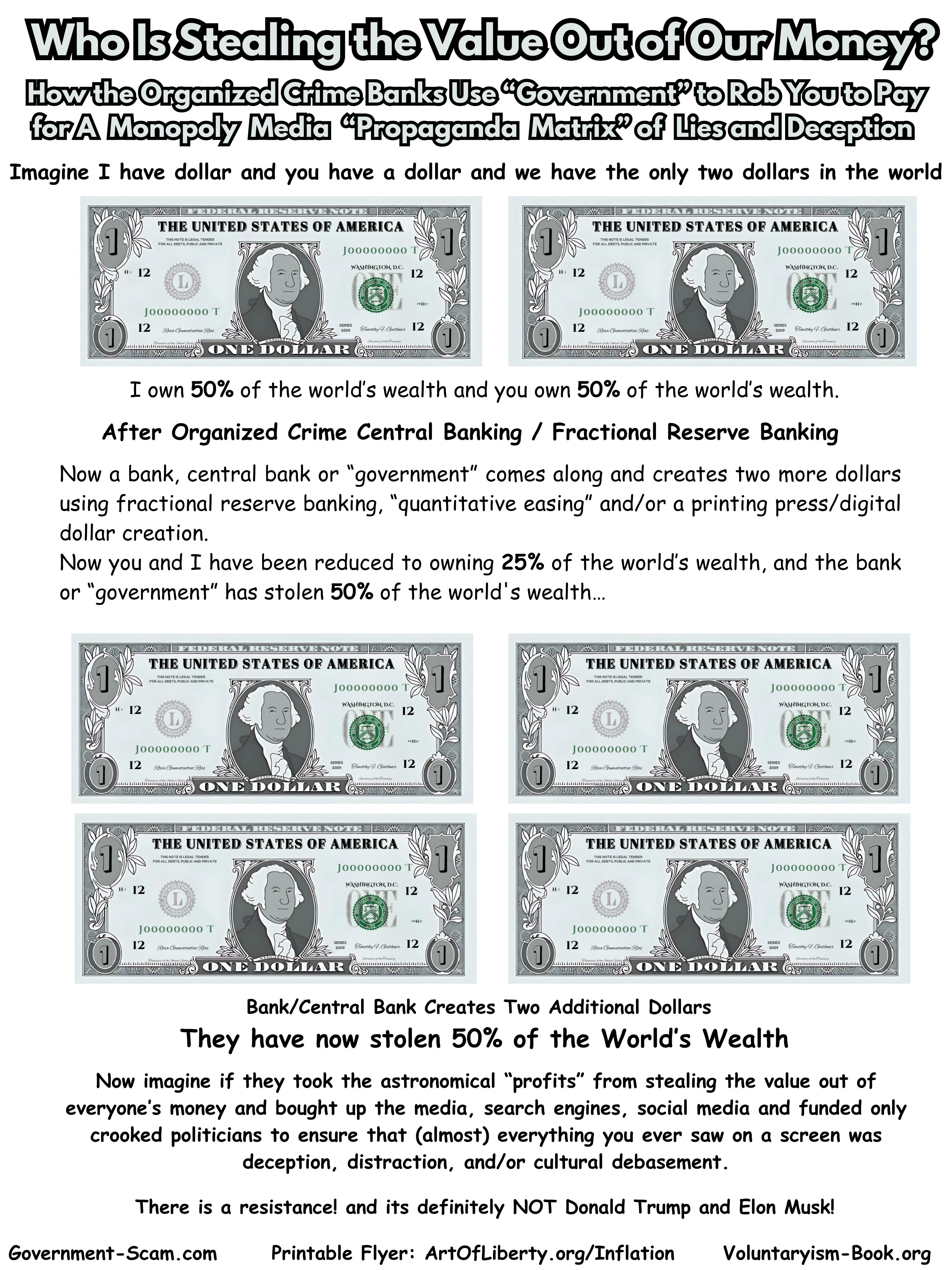 A start-up public policy organization: Voluntaryist crime fighters exposing inter-generational organized crime’s control of the “government,” media and academia. The foundation is the publisher of “Government” – The Biggest Scam in History… Exposed! , and its companion media: The Liberator– our expose of “government” illegitimacy and criminality,   ArtOfLiberty.Substack.com – our original writings and research, The Daily News – a curated feed of the best of the alternative media, censored truth videos, and more on Substack and Telegram,  Five Meme Friday – a lower volume weekly summary of the Daily News and at least five fresh, hot, dank liberty memes on Substack and Telegram, and “Government,” Media, and Academia Exposed! – A Telegram summary of the best mainstream and alternative news stories proving our thesis that all three are being hierarchically controlled by inter-generational organized crime interests.