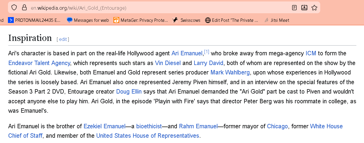 Etienne de la Boetie² In fact, he is supposedly the theatrical agent that the movie/show Entourage is about. There’s a character in there that’s based on him [Ari Gold]. He’s one of the most famous super agents in Hollywood, and he was behind the scripting that gave Trump the gravitas to essentially run for president.