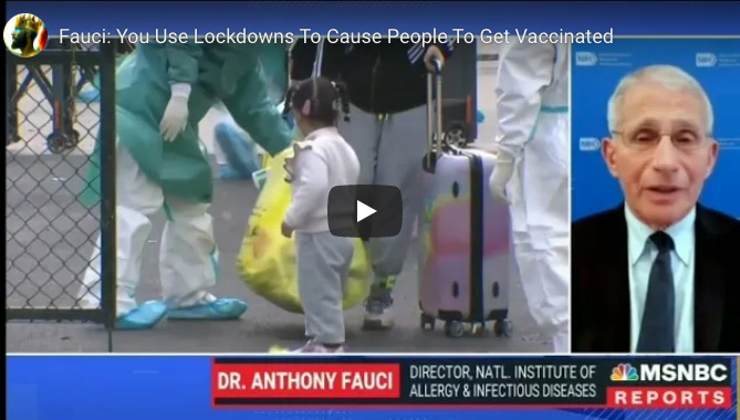 Watch: Fauci Admits “You Use Lockdowns To Get People Vaccinated”