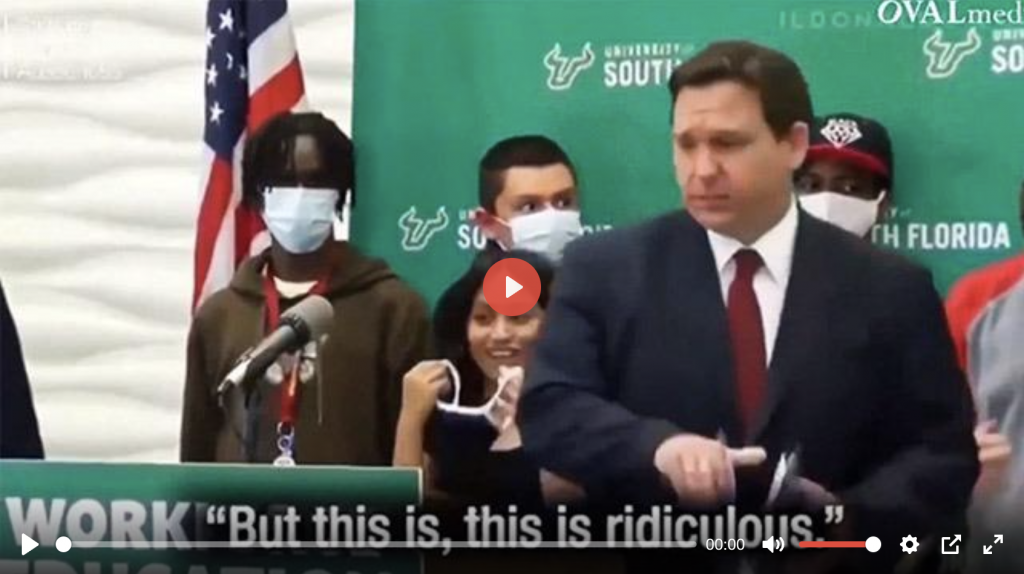Has the tide turned? Now even major politicians are making fun of people wearing masks. Florida Governor Ron DeSantis mocked a group of cyber-security students for getting chumped into the masks stating the fact obvious to BILLIONS of others on the planet not wearing masks: They don’t really do anything and called it “theatre”. Here is your daily moment of Zen.
