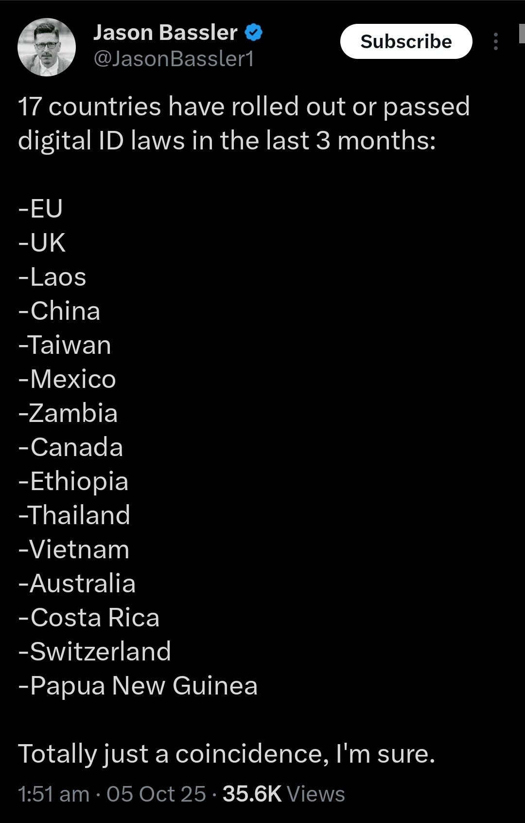 People often say “if you don’t have anything to hide what’s the problem?” There is no rational argument for allowing people you don’t know and have never met to have any power to control your life. The “nothing to hide” mantra is based on the historically illiterate assumption that you will never have anything to fear from authority. To offer this argument as a reason to adopt digital ID is so naive we might call it stupid.
