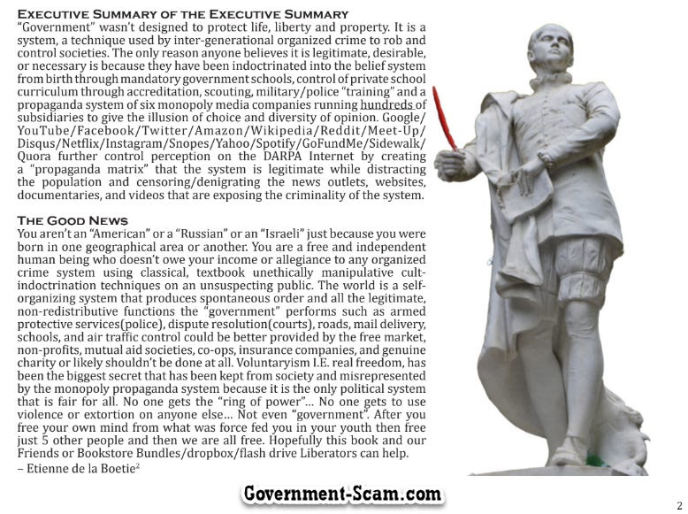 4. Get a Pop Up Guerrilla Bookstore and Earn Profit from Distributing Copies of “Government” in Your Town / City – Do you (or a friend) have a retail location? Open up a Pop Up Guerrilla Bookstore and share in the profits. We have everything you need to attractively merchandise “Government” and Liberators in a small footprint. Details here: https://government-scam.com/bookstore