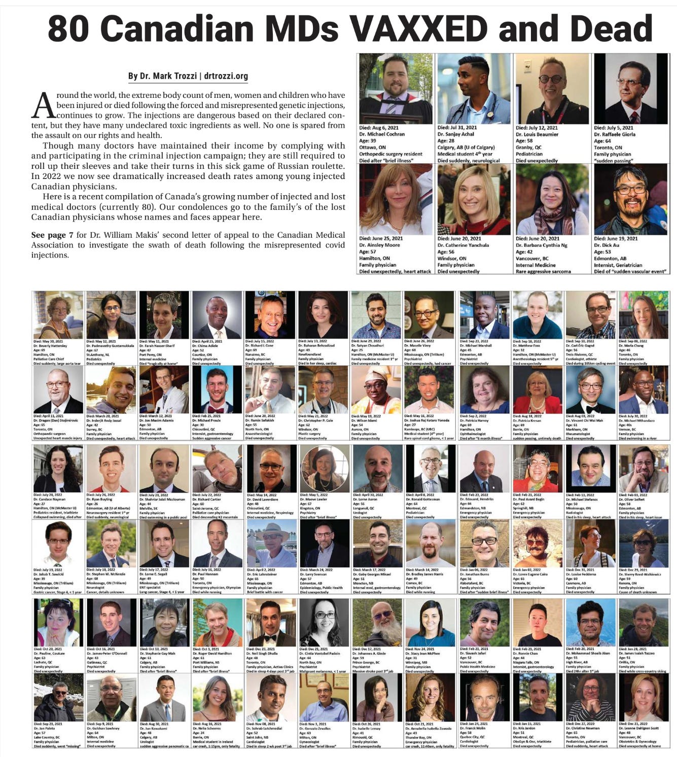 PLUS…. 80 Canadian MDs Vaxxed & Dead….