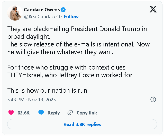 Fivememefri – Candace Owens: Organized Crime Israel is Blackmailing Trump