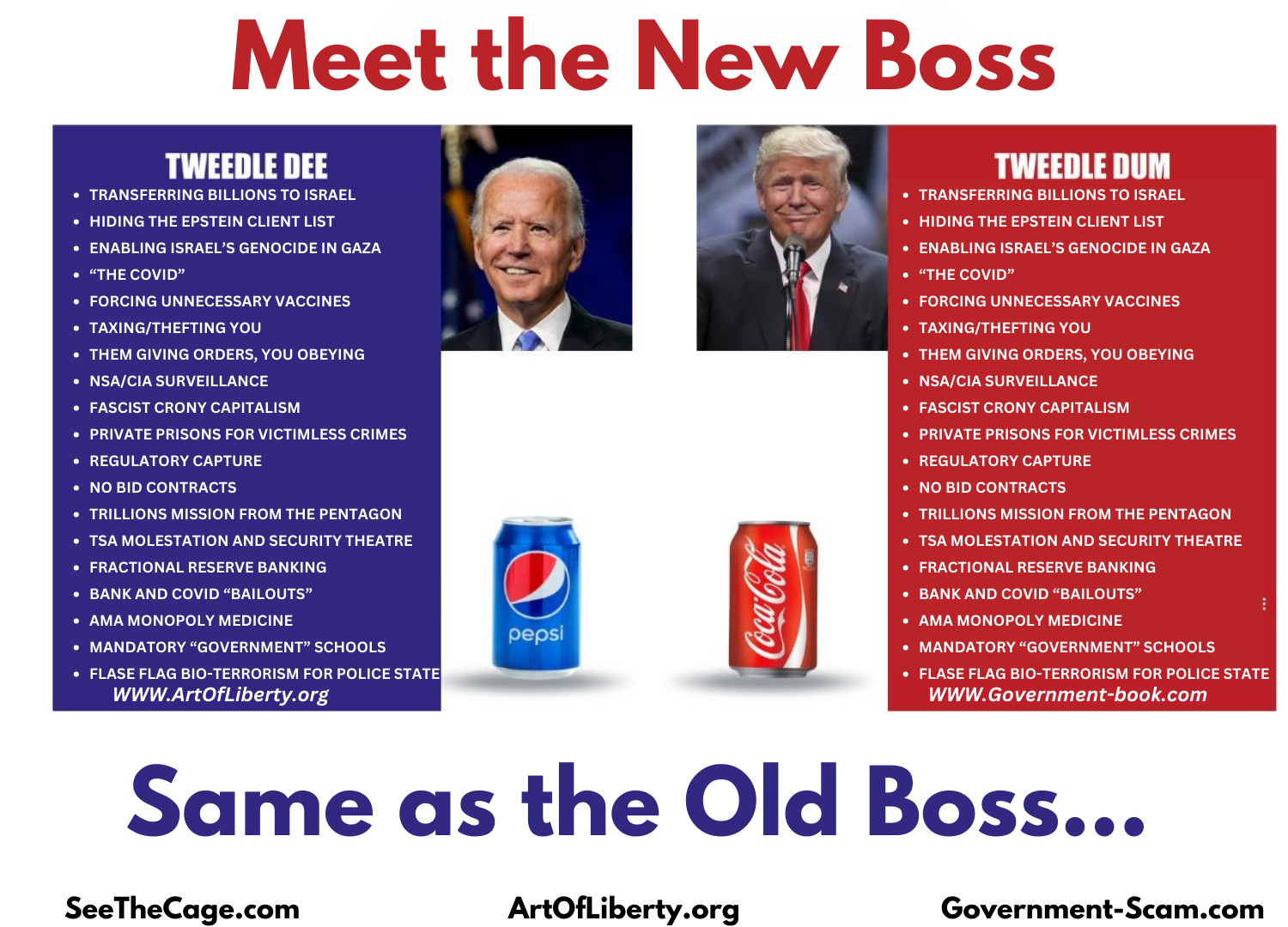 Inter-generational organized crime leverages its understanding of behavioral psychology to offer the choice of two potential puppet leaders to become “Pope” of the indoctrinated Statist religion: a “Blue” Government Leader marketed to appeal to urban liberals, and a “Red” Government Leader designed to appeal to rural conservatives. Many people fall for the fake “Hobson’s Choice” (and Brute Force Manufactured Consensus) and begin to self-identify with their preferred “leader.”