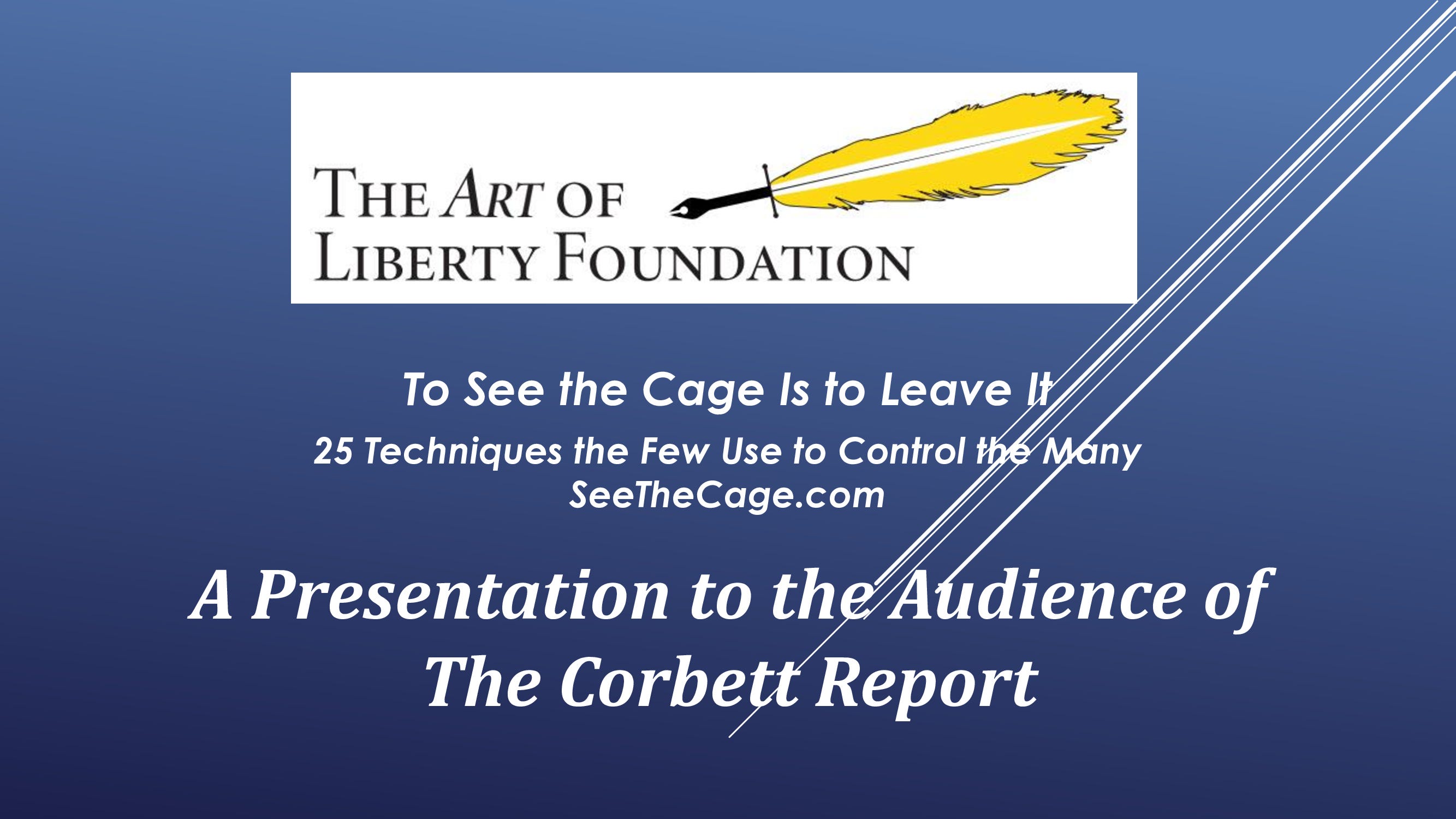 Etienne de la Boetie2: Sure. Well, the full title is To See the Cage Is to Leave It: 25 Techniques the Few Use to Control the Many. And one of the big reveals of the book is that organized crime, government, and their henchmen in the monopoly media are running a variety of unethically manipulative techniques—not just to get the population to go along obediently, but to really indoctrinate the idea of having a government as a religion.