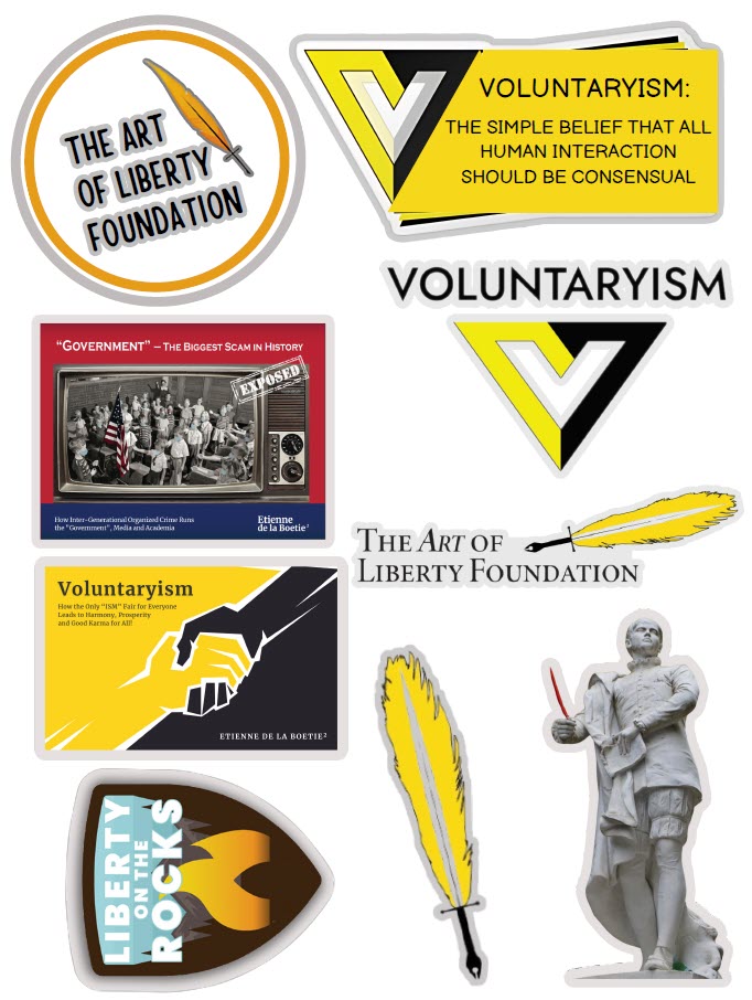 Our 2026 sticker collection: The Art of Liberty and Voluntaryism for your water bottle, laptop, or notebook.