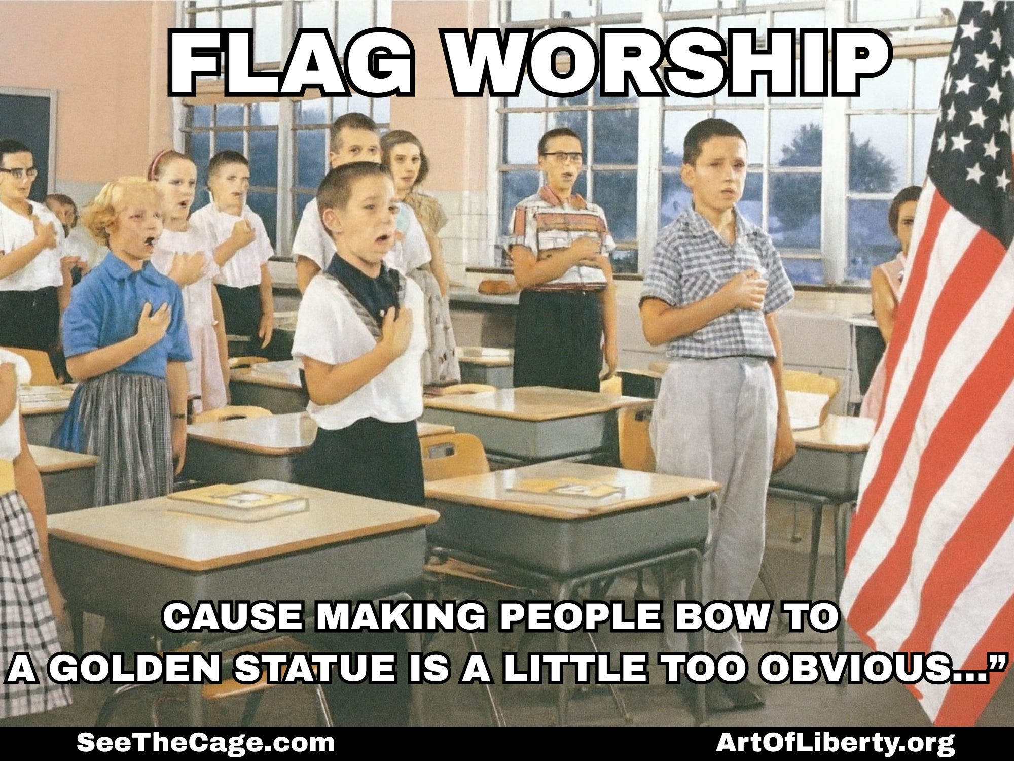 The vast majority of people who identify themselves as Christians not only disregard the blasphemy but even argue in favor of it. How dare you question the legitimacy of the innumerable wars we wage around the globe? How dare you suggest that the state is evil? How dare you advocate throwing off the yoke of human rule? Modern Christians are overwhelmingly in favor of the American state despite its trail of theft, enslavement, and murder over the past one hundred fifty years. They wave their flags, recite the Pledge of Allegiance, and repeat their statist mantras of “Support the troops!” “Land of the free!” “We’re a Christian nation!” “Love it or leave it!” “God bless America!” and so on.