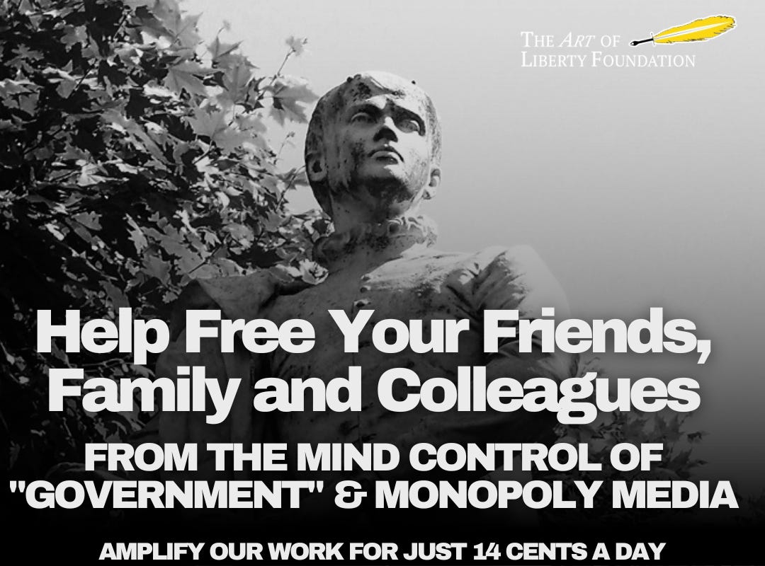We publish The Daily News, a free survey of the best of the alternative media, censored videos, and documentaries, and the Daily News Digest, a once-per-day-summary of the Daily News as a premium service for paid subscribers of any Art of Liberty Foundation Substack and Five Meme Friday – a free weekly e-mail or Telegram summary of the best of the alternative media, censored truth videos, and at least five hot, fresh, dank liberty memes every week, and “Government,” Media, and Academia Exposed! – A Telegram summary of the best mainstream and alternative news stories proving our thesis that all three are being hierarchically controlled by inter-generational organized crime interests. You can read our 2023 Annual Report here.