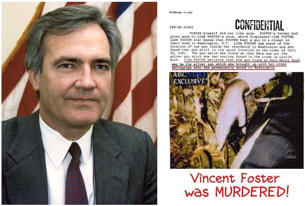 Vince Foster, the Clinton’s attorney and an official in their administration, is found dead in Fort Marcy Park in 1993 in what appeared to many observers as a staged suicide. On the right is his widow’s testimony to the FBI that the only gun he owned was silver vs. the black gun photographed at the scene. Supreme Court Justice Brett Kavanaugh helped cover it up.