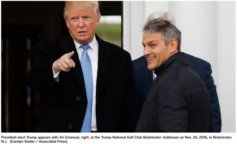 Trump is an actor whose theatrical agent is Ari Emanuel, the brother of Obama’s Chief of Staff Rahm Emanuel, who famously said: “You never want a serious crisis to go to waste. And what I mean by that is an opportunity to do things that you think you could not do before.” and Ezekiel Emanuel, a eugenicist who is/was part of Biden’s Covid-19 task force.