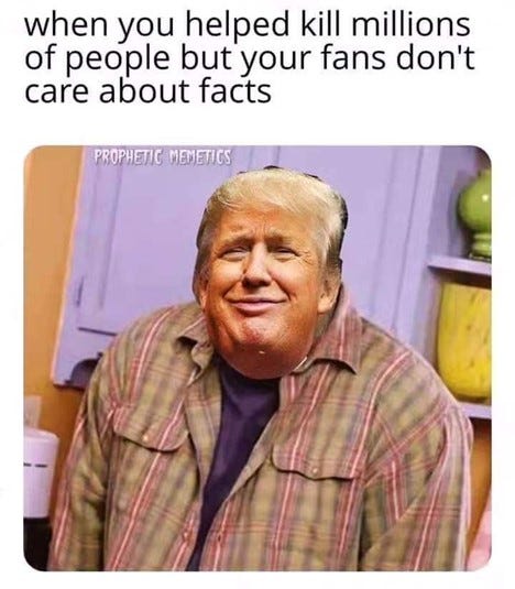 –Trump signed the PREPS Act, which gave indefinite liability immunity to all the BigPharma companies.