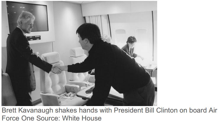 2. His coverup of the Vince Foster “suicide” (murder) during the Clinton administration, where Kavanaugh was brought in as a replacement Assistant Independent Council after the US federal prosecutor handling the death investigation at the outset, Miquel Rodriguez, had resigned from the Starr investigation after a bitter dispute. His resignation letter – later leaked – said he was prevented from pursuing investigative leads, that FBI witness statements did not reflect what witnesses had said, that the suicide verdict was premature and that his grand jury probe was shut down just as he was beginning to uncover evidence.
